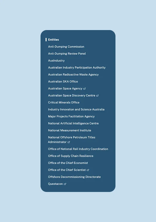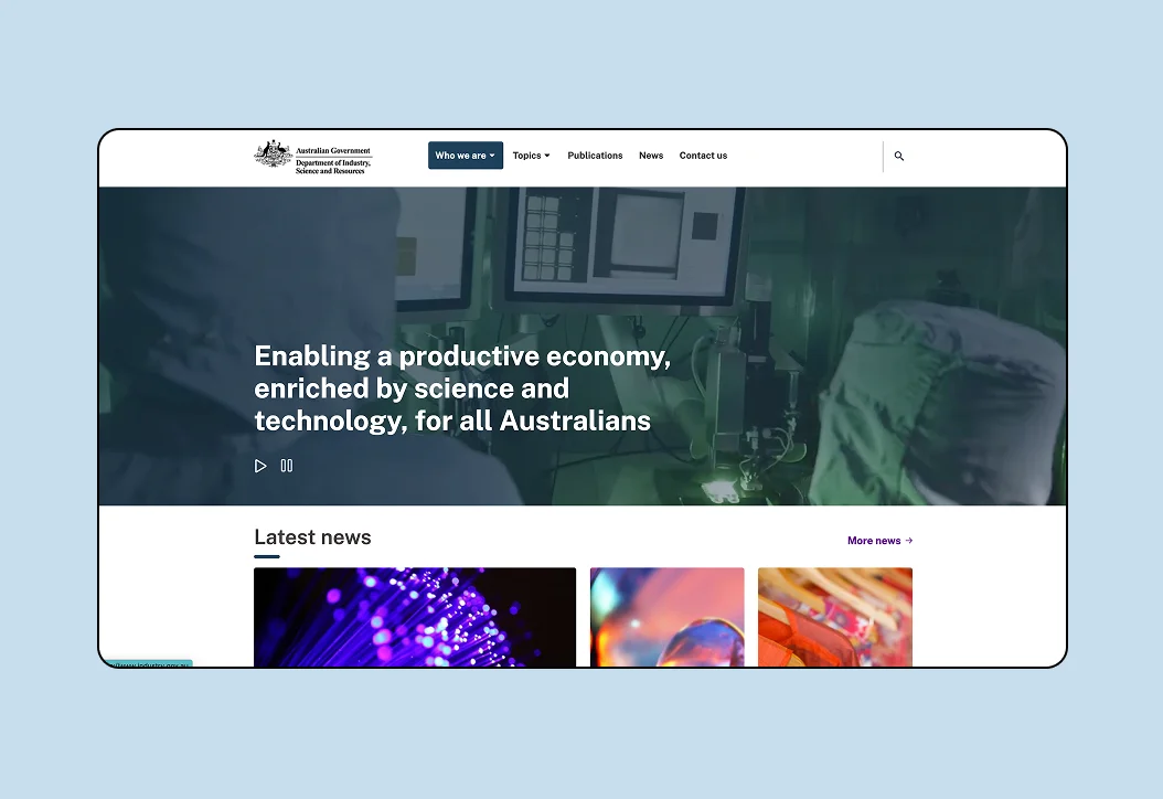 Led the redesign of the Department of Industry website, unifying 27 entities and their independent systems into a single cohesive digital experience. Ran alignment workshops, defined the information architecture, and built a scalable design system that met government standards.